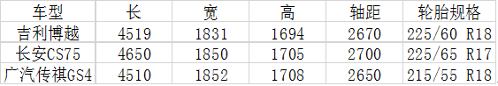 測試的三款車分別為吉利博越、長安CS75、傳祺GS4。車款的選擇,確定為自動擋車型。原因有二,一來現在購買自動擋的朋友越來越多,二來是自動擋變速箱可以更好的體現廠家的技術與對車輛整體調校的能力。