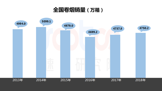 我國是煙草專營制,煙草行業是國家壟斷行業,也是財政納稅大戶。龐大的用戶基數,使我國卷煙銷量一直位居全球首位,2017年我國卷煙銷量達4737.8萬箱,約占全球的40%,2018年銷量為4750.2萬箱,稅收為11306億元。不過隨著控煙呼聲的增長,以及用戶對健康的重視,電子煙正逐漸替代卷煙成為煙民的新選擇,電子煙市場在悄然崛起。