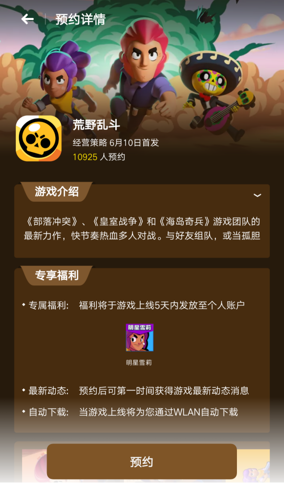 游族網絡官網《荒野亂斗》預約正式開啟,安卓用戶也可登錄游族官網進行預約操作,在各大渠道上的預約獎勵都是一致的,明星雪莉限定皮膚等你來拿。