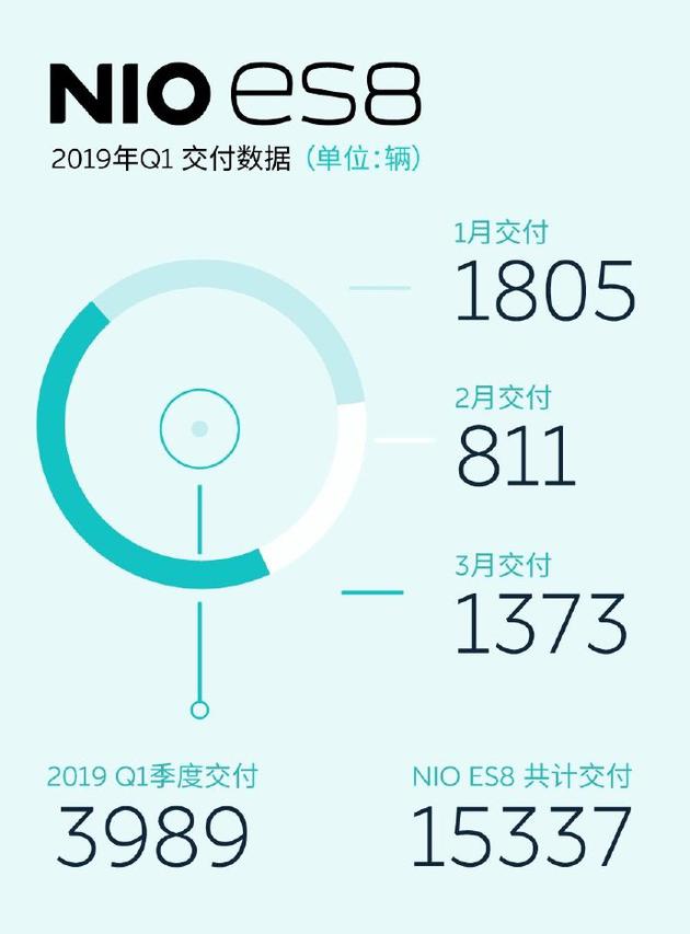 蔚來表示,受到整體市場(chǎng)影響以及春節(jié)假期的影響,1月份公司交付1805輛ES8,2月份交付811輛,3月份交付1373輛,2019年第一季度ES8交付總量達(dá)到3989輛。