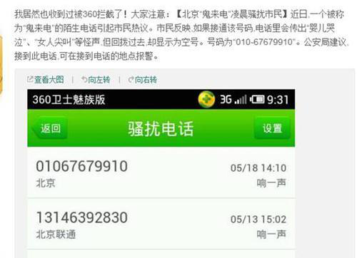 在幾年前,有網友在微博上爆料,稱自己“半夜會接到騷擾電話,電話里會傳出嬰兒哭聲”,而360第一時間發現了這一信息,而且發現360手機衛士可以直接攔截此類騷擾電話。