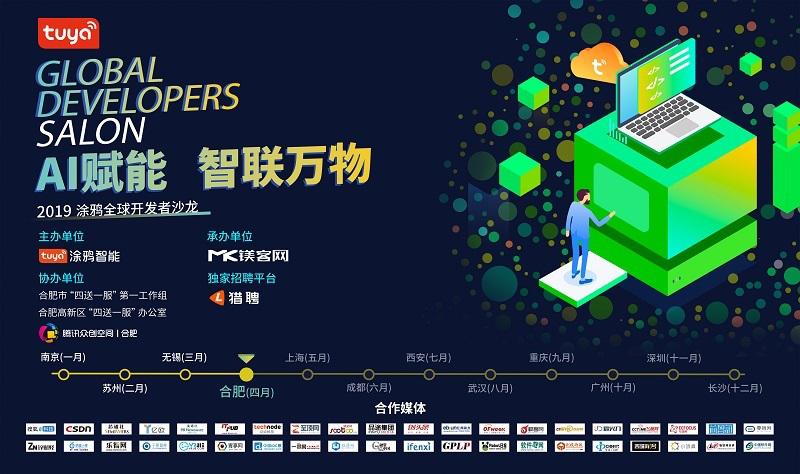 4月11日,由涂鴉智能主辦、鎂客網承辦、騰訊眾創空間與合肥高新區經貿局共同協辦的“AI賦能 智聯萬物——2019涂鴉全球開發者沙龍·合肥站”在高新區騰訊眾創空間路演廳圓滿落幕。