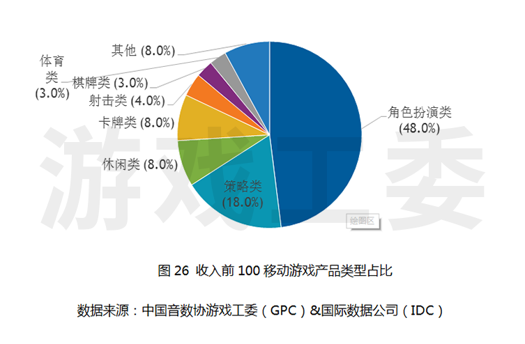 報告同時對收入前100的移動游戲產品分布進行了具體分析