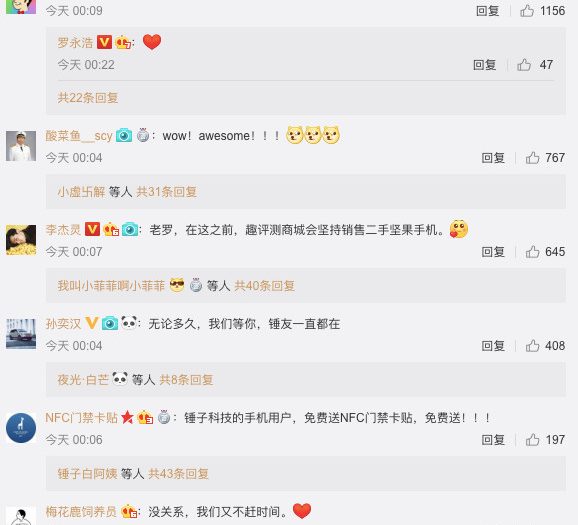 在羅永浩的微博下,不乏有粉絲對此表示支持。看評論時間,也多為深夜?;蛟S對于粉絲來說,這句話,才符合羅永浩的形象。