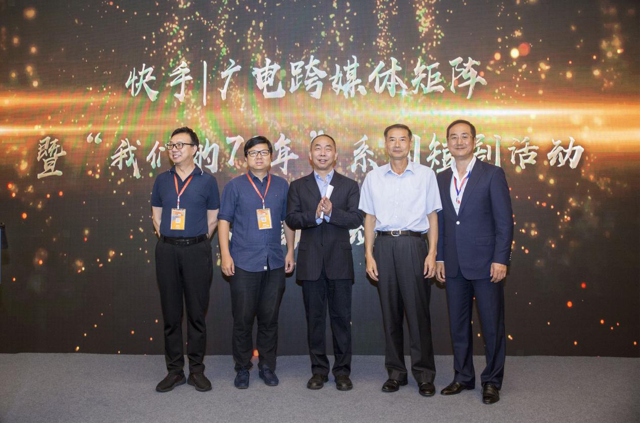 27日下午,在網絡音頻論壇上,國家廣電視總局網絡視聽節目管理司司長魏黨軍、中國網絡視聽節目服務協會常務副會長羅建輝、中國網絡視聽節目服務協會音頻工作委員會理事長林心憲、北京快手科技有限公司CEO宿華、中廣聯合會廣播文藝工作委員會副會長王鳴鐸等多位音頻行業領軍人物共同啟動了廣電跨媒體矩陣暨“我們的70年”系列短劇活動。