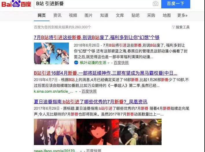 但內容的開放,并不意味著B站將“去二次元”,反而在引進番劇方面更加重視。在任意搜索引擎內搜索“B站 引進新番”的關鍵詞,均可見相關新聞。