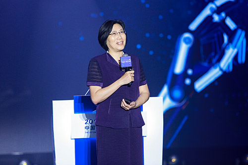 (清華大學智能技術與系統國家重點實驗室主任朱小燕發表題為“數字未來中的人工智能”的主題演講)