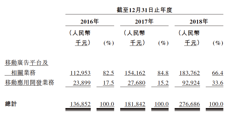 程序化廣告的增長(zhǎng)有利地拉動(dòng)了赤子城廣告業(yè)務(wù)總體營(yíng)收。招股書(shū)顯示,赤子城的程序化廣告收入從2016年的5852萬(wàn)元增加至2018年的1.73億元,復(fù)合年增長(zhǎng)率71.9%;與此同時(shí),其占廣告業(yè)務(wù)總收入的比重從2016年的51.8%增加到2018年的94.1%。