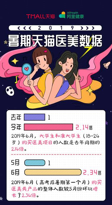 數據顯示,今年6月中旬,隨著高考和暑期正式拉開序幕,天貓上購買醫美類產品的整體人數環比5月增長了2.34倍。