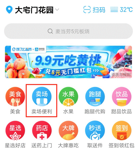“賣場便利”頻道是餓了么APP核心的“金剛位”之一。該頻道基于用戶LBS定位,優選附近商超品牌,可一站式購齊水果、蔬菜、零食、日用品等。在餓了么上逛超市,騎手送貨上門正成為一股新的潮流。