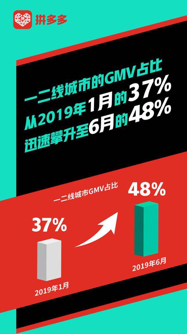 速途網8月21日消息(報道:李楠)今日,拼多多創始人及CEO黃崢在財報電話會議上表示,拼多多的用戶滿意度和滲透率正在持續提升。據悉,今年1月,拼多多平臺一二線城市用戶的GMV占比為37%,6月,該比例迅速攀升至48%。