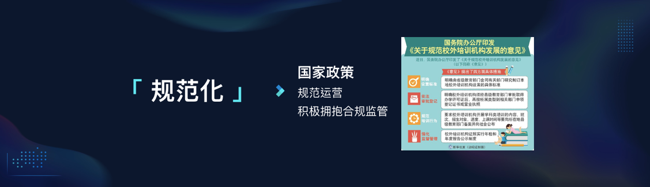 規(guī)范化:教育行業(yè)作為政策導(dǎo)向型行業(yè),需要在黨和政府的方針政策指引下規(guī)范運(yùn)營(yíng)。目前,公辦民辦、線上線下同步監(jiān)管已成常態(tài)。民辦學(xué)校花樣繁多的掐尖招生路徑正在被封堵。各類(lèi)教育培訓(xùn)機(jī)構(gòu)的教學(xué)內(nèi)容、師資力量、財(cái)務(wù)收費(fèi)等運(yùn)營(yíng)環(huán)節(jié)都已被納入監(jiān)管。民辦教育即將結(jié)束粗放型發(fā)展,進(jìn)入規(guī)范化運(yùn)營(yíng)階段。