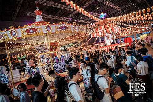 這次展會上,有一個展區的裝飾風格顯得尤為特別,明亮的金紅配色,錯落的樓宇飛檐,充滿了中國古風。這是FES2019上特別設置的中華體驗館,在開展前的宣傳中,便已經引起了玩家們的好奇與關注。