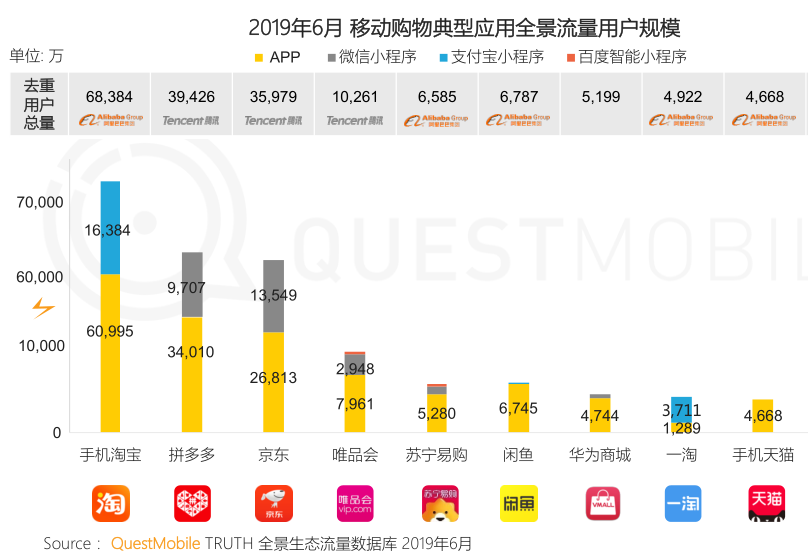 8月,手機淘寶APP用戶規(guī)模為6.42億,“淘寶-支付寶小程序”用戶數(shù)1.15億,去重后的全景用戶規(guī)模為6.91億;