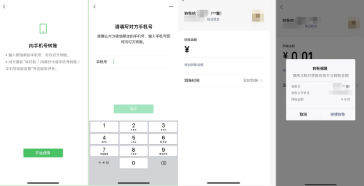 轉(zhuǎn)賬過程中,也會(huì)有頁面提示一定要開啟相關(guān)功能開關(guān)。隨著手機(jī)號(hào)輸入,則會(huì)出現(xiàn)對(duì)方的微信昵稱以及真實(shí)姓名的最后一個(gè)字,以確保轉(zhuǎn)賬對(duì)象的正確性。輸入轉(zhuǎn)賬金額以后,也會(huì)有相應(yīng)的提示。