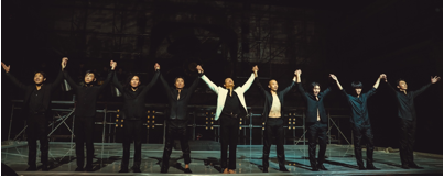 他們激情狂瀾,熱血沸騰,通過男人們每個不同階段性的情境拼湊成本次作品中的所有故事路線導圖,構建出一個充滿荷爾蒙式的舞蹈劇場。《公狗》所呈現出的故事情景是主創團隊的人生故事,而這故事里有他們面對人生不同階段的勇氣,也有他們站在十字路口時的迷惘。這場演出,他們的絕活并沒有完全顯露,所有人的身體都在劇情之中,控制得恰如其分。現場下雨部分,當真的雨水從空中飄落時,有觀眾說:“我流淚了。”