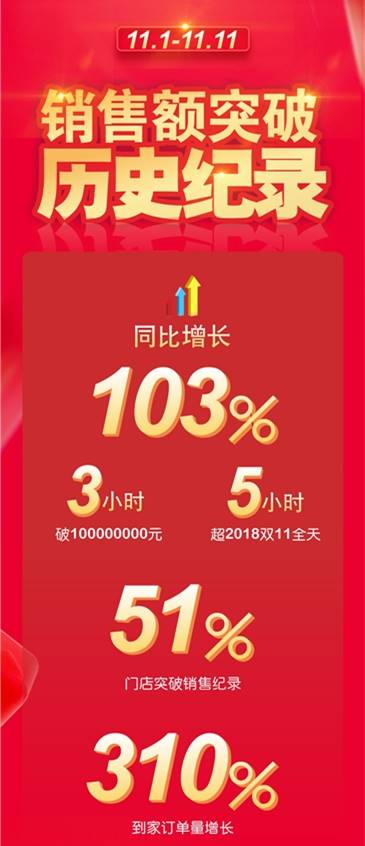 速途網11月12日消息(報道:李楠)近日,家樂福公布了首次參與蘇寧雙11的戰(zhàn)報。數據顯示,11月1至11日,家樂福銷售額同比增長103%,51%的門店突破單日銷售紀錄,到家服務訂單量增長310%,最快僅用時16分57秒就完成送達。