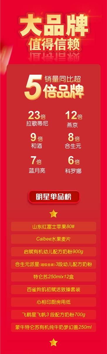 雙十一不僅有平臺間的廝殺,也有品牌商之間的博弈。數據顯示,家樂福雙十一期間,拉歌蒂尼、燕京、和酒、合生元、藍月亮、科羅娜等品牌銷量增幅較高,其中拉歌蒂尼銷量同比超23倍,燕京同比超12倍。單品銷量榜由山東紅富士蘋果80#、Calbee水果麥片、啟賦有機幼兒配方奶粉領跑。