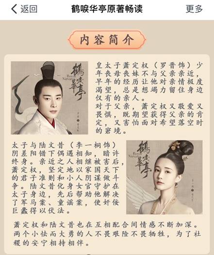 由原著作者雪滿梁園親自擔任《鶴唳華亭》劇版編劇,雖然情節(jié)上與小說有很大的改動,但仍保留了小說的風格和格調(diào)。