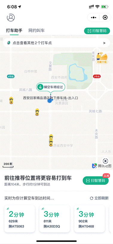 速途網11月25日消息(報道:李楠)近日,西安「出租車智慧碼」全面升級新增“打車助手”功能,通過精準獲取1公里內出租車實時位置和預計到達時間,為乘客規劃最佳上車地點,并讓乘客通過實際情況高效規劃揚招出行或是網約出行,讓揚招打車不再盲目等待。