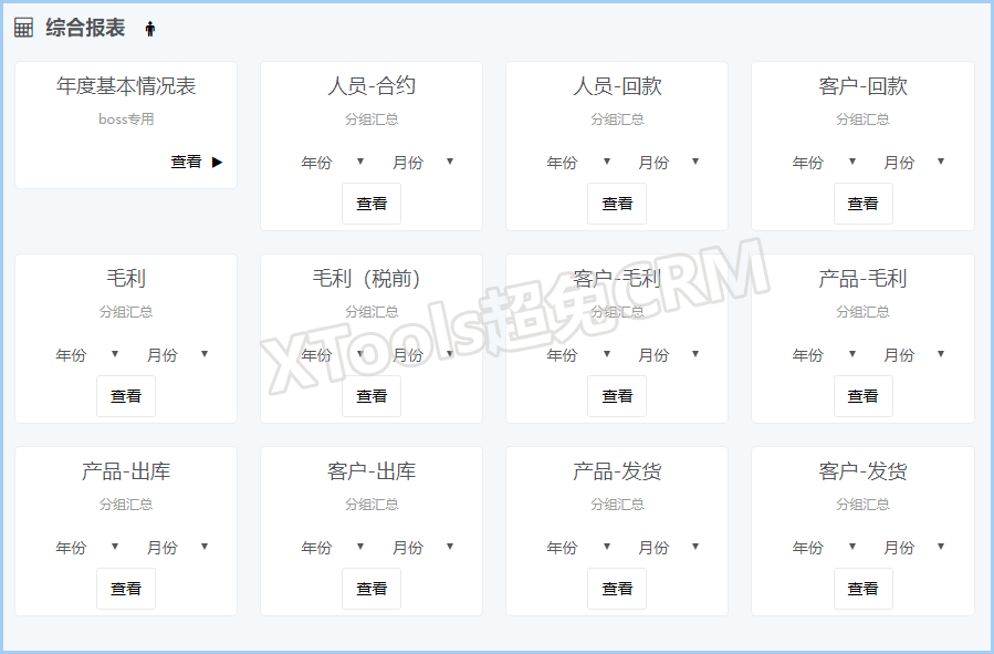此外,還有毛利、出庫(kù)、發(fā)貨、合約、回款、采購(gòu)、采購(gòu)產(chǎn)品等數(shù)據(jù)的分組匯總,查詢數(shù)據(jù)操作快捷,可按照年、月查詢。