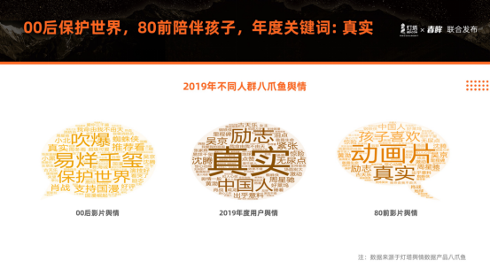 根據燈塔報告,2019年中國的觀影用戶群體呈現出一些新的趨勢:在全年的整體購票用戶中,20-29歲人群依然占據主流,而在首次線上購票的用戶當中,19歲及以下、40歲以上觀眾占比突出。換句話說,“00后”和“80前”用戶構成了2019年的增量觀影用戶。兩個群體的偏好各不相同,“00后”偏愛《少年的你》,而“80前”則更多選擇了《我和我的祖國》。