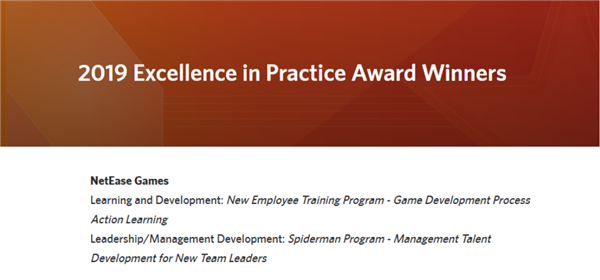 此前,“新人MINI培訓項目”與“Spiderman新經理覺醒計劃”因設計和成果已在2017、2018年分別獲得中國人才發展菁英獎——最佳學習項目。另外,網易游戲學院也曾榮獲《培訓》雜志評選的“50強企業大學”這一項頂尖殊榮。