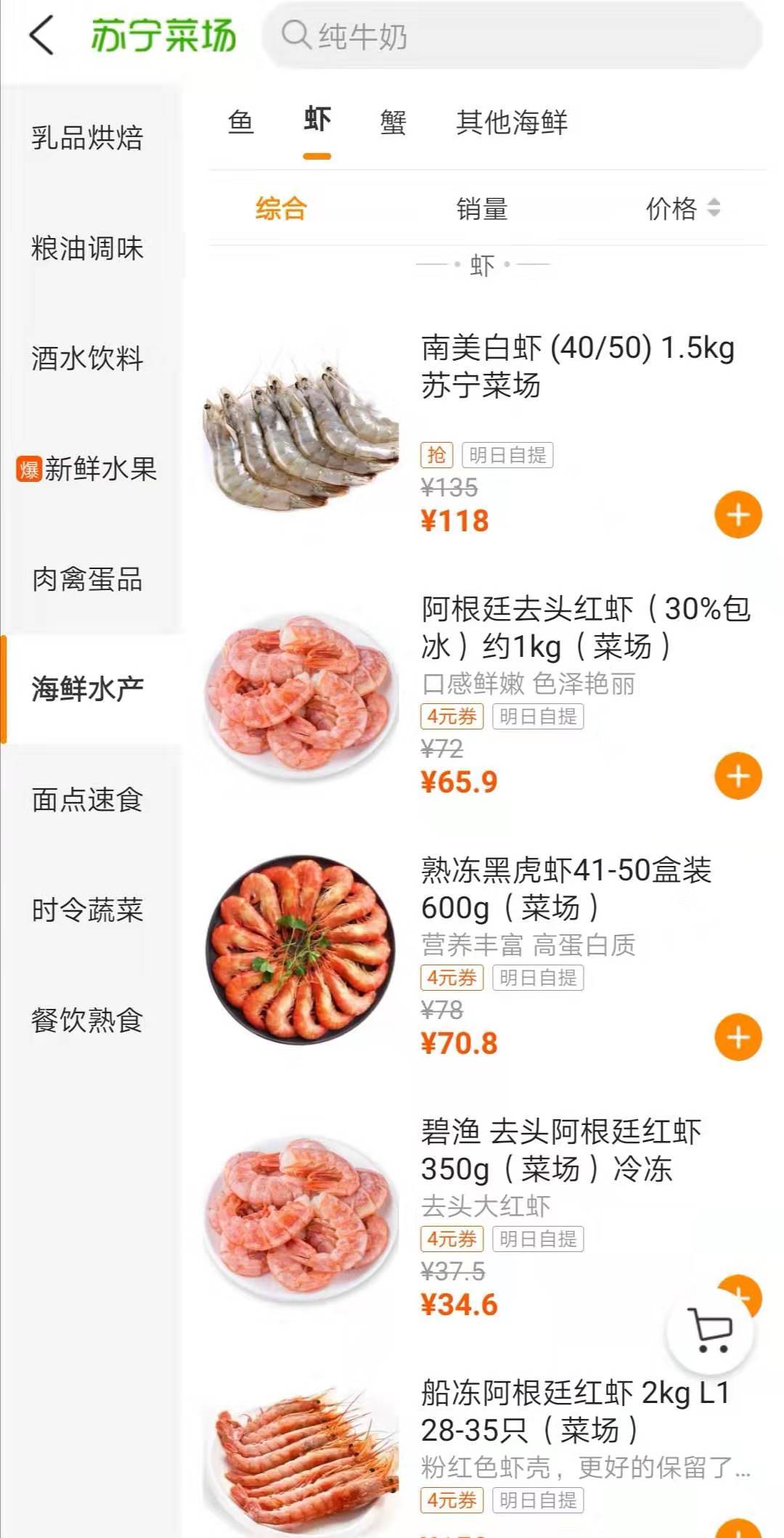 蘇寧菜場數據顯示,阿根廷紅蝦、南美白蝦、澳洲牛排等進口生鮮近一周銷量提升明顯。在上海市場,進口水產拉動整體類目銷售增長近7成。
