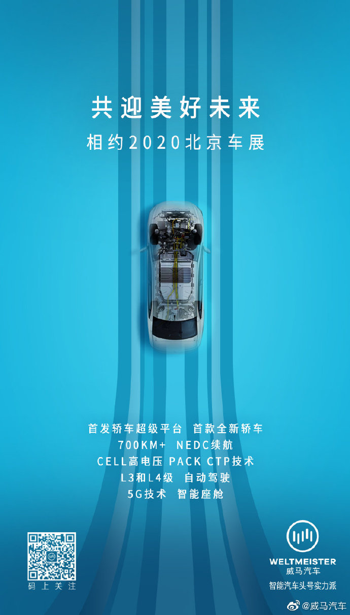 速途網(wǎng)訊 昨日,威馬汽車(chē)在微博中宣布,將于2020年北京車(chē)展發(fā)布轎車(chē)平臺(tái)。海報(bào)中顯示,該轎車(chē)具備N(xiāo)EDC續(xù)航700km+,支持L3&L4級(jí)自動(dòng)駕駛和5G智能座艙。