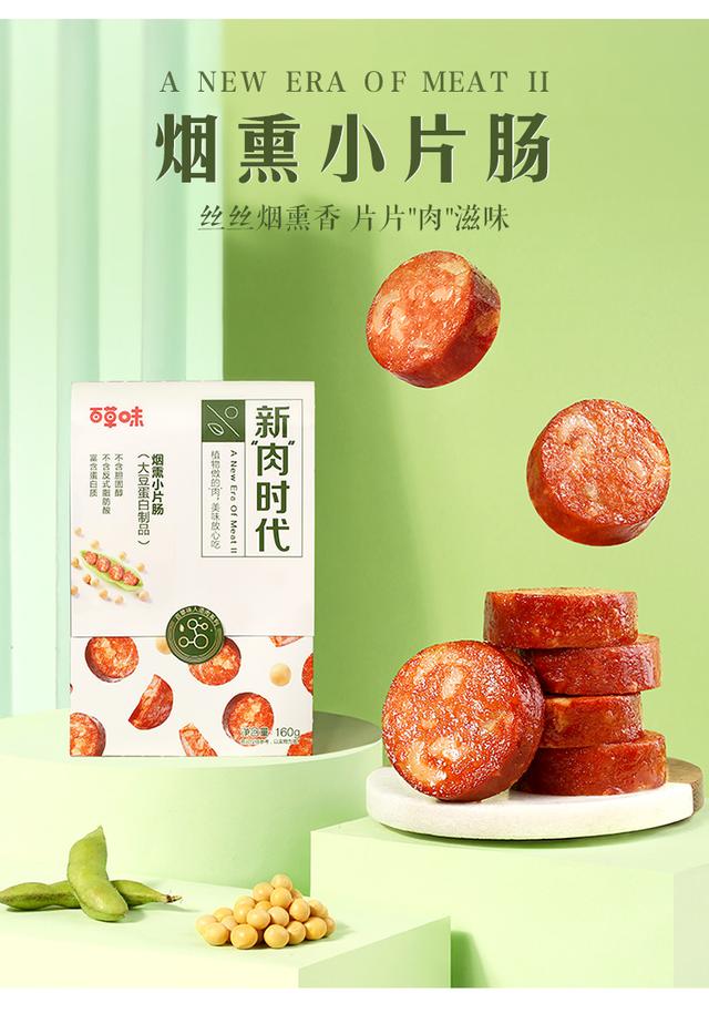速途網訊 今日,百草味宣布上市“人造肉”零食一代產品——新“肉”時代煙熏小片腸,這是國內首款通過低溫工藝即可食用的“人造肉”產品。百草味相關負責人表示,該款產品以“解饞無罪惡感的新型植物基肉零食”為產品定位,目前傾向于為18-35歲、追求無負擔健康生活的年輕人群。