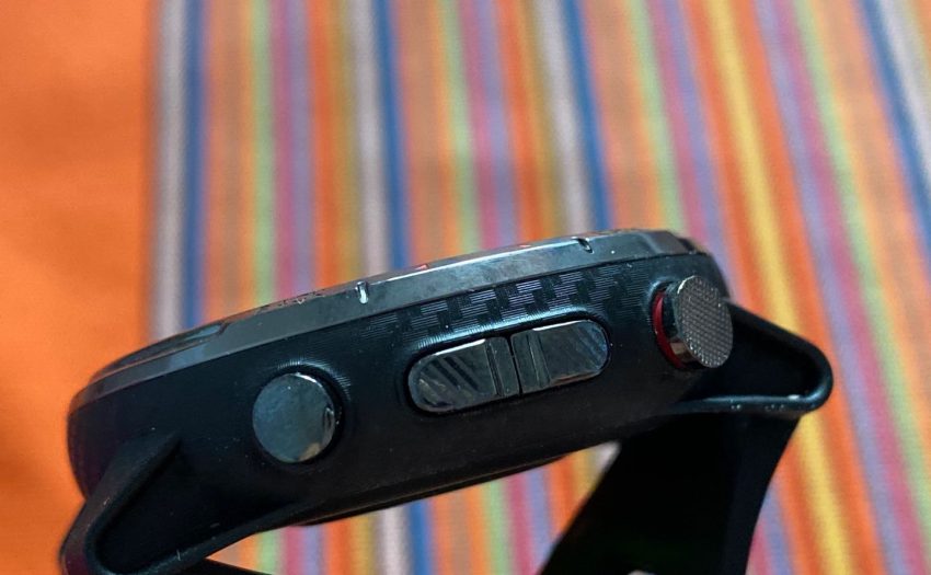 表身右側(cè)配備四枚物理按鍵,利用物理按鍵可以避免運(yùn)動(dòng)出汗、或淋水之后,對(duì)于觸摸屏操作的干擾。