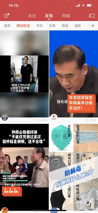 速途網1月23日消息(報道:李楠)昨日,有細心網友發現,快手上線了“肺炎防治”頻道。面對近期新型冠狀病毒在全國多地傳播的疫情,速途網從快手方面獲悉,快手協調內部多個部門,緊急推出多項運營手段,向數億用戶及時、準確、傳遞疫情信息,以盡最大力度普及防治知識。