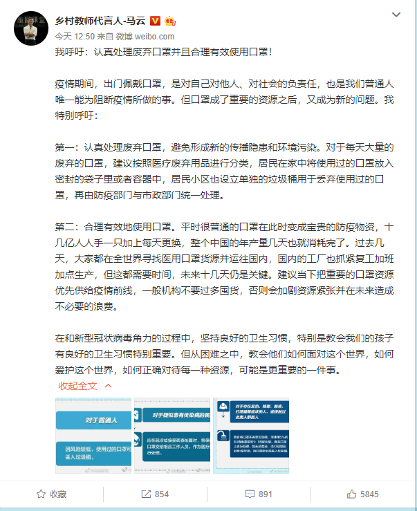 速途網(wǎng)訊 剛剛,馬云發(fā)文呼吁認(rèn)真處理廢棄口罩并合理有效使用口罩,他建議將廢棄口罩按醫(yī)療廢棄用品分類(lèi),避免形成新的傳播隱患和環(huán)境污染。同時(shí),馬云建議把資源優(yōu)先供給疫情前線,一般機(jī)構(gòu)不要過(guò)多囤貨避免加劇資源緊張。(李楠)