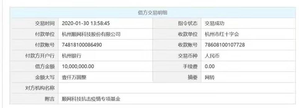 速途網1月30日消息(報道:李楠)今日,杭州順網科技股份有限公司通過浙江省杭州市紅十字會捐贈人民幣1000萬元現金,成立“抗擊新型冠狀病毒肺炎疾病專項基金“(簡稱:順網科技抗擊疫情專項基金),捐贈資金使用分為兩部分:
