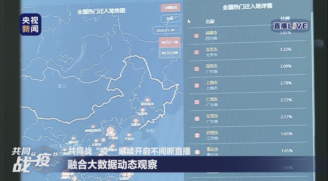 速途網(wǎng)1月31日訊(報道:喬志斌)今日,百度副總裁、百度地圖事業(yè)部總經(jīng)理李瑩做客央視新聞客戶端24小時直播節(jié)目《共同戰(zhàn)“疫”》,現(xiàn)場運用百度地圖遷徙大數(shù)據(jù)平臺和實時路況平臺,以1月30日為例分析了全國的遷徙狀況,解讀了今年春運返程的相關(guān)變化。