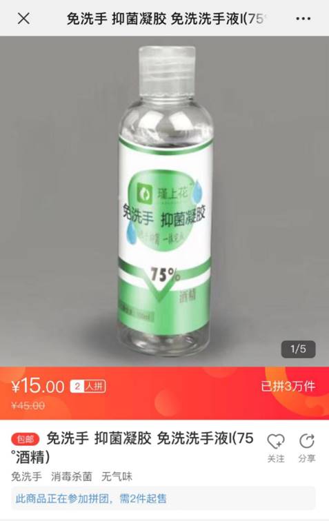 春節假期進入尾聲后,有少部分工廠陸續復工。其中有一家來著于蘇寧“拼工廠”的河北企業與蘇寧拼購通力合作,開足馬力,全力生產酒精含量為75%的免洗手抑菌凝膠。據蘇寧拼購相關負責人介紹:“蘇寧將根據最近疫情消費數據指導該‘拼工廠’生產,預估未來幾天銷量,讓工廠效率達到最大。”據悉,該款“75%免洗手抑菌凝膠”商品僅2月2日上半日便拼出3萬單。河北“拼工廠”負責人表示,目前產能能達到日均20萬瓶。