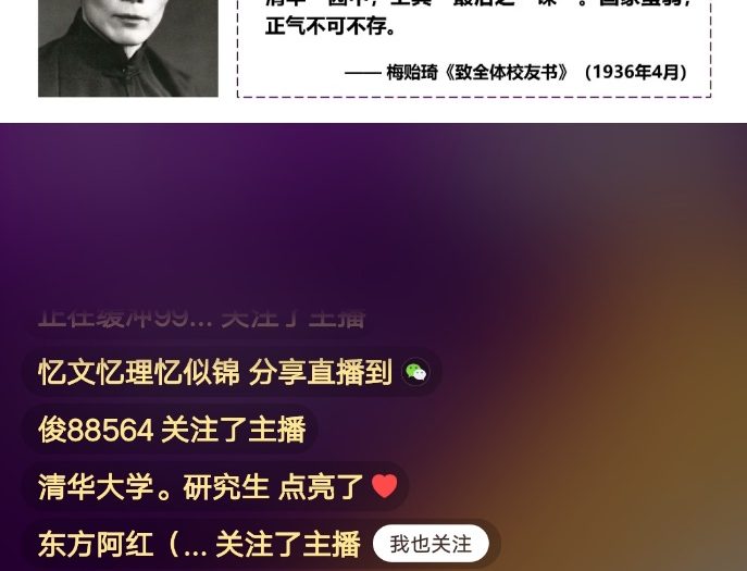 清華大學(xué)網(wǎng)絡(luò)直播“開學(xué)第一課”