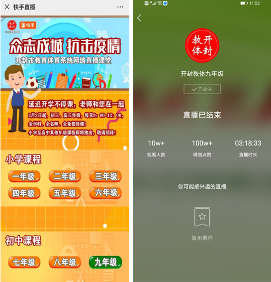 開封教體局聯(lián)合快手直播授課,引來數(shù)萬蹭課學(xué)子