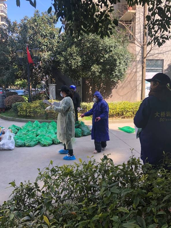 如此一溝通,居民與鮮肉供應商之間便搭起了蘇寧小店這座橋。胡玉玲根據社區微信群的團購情況,每天向供應商提供鮮肉需求,供應商將鮮肉運至社區的蘇寧小店,胡玉玲再組織小店店長,一起將各小區的肉配送過去。而且在居民領肉時,胡玉玲事先讓大家準備好紙,在上面寫上自己購買的肉品明細,領肉時大家間隔一兩米,只憑紙上的字便可取肉,全程無接觸。