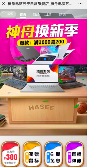 速途網2月21日消息(報道:吳佳馨)今日,蘇寧易購攜手神舟電腦啟動優惠專場。全場電腦產品參與優惠,最高降價800元,領券還能疊加立減300元,此外還有至高6期免息、以舊換新補貼等優惠。通過蘇寧易購官網、APP及V購服務下單,即可在第一時間收到蘇寧“無接觸”配送到家服務。