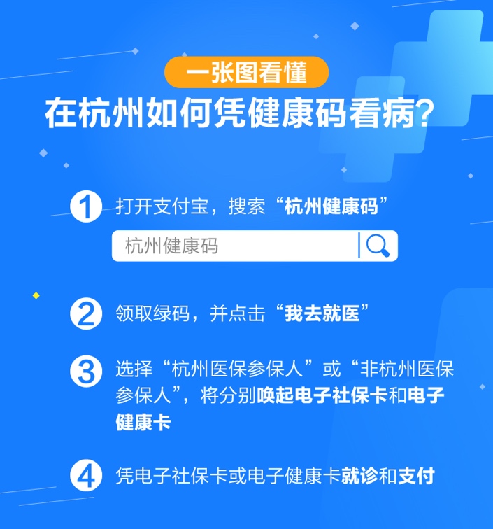 據悉,杭州市民打開支付寶搜索“杭州健康碼”,在“我去就醫”選擇“杭州醫保參保人”或“非杭州醫保參保人”,將分別喚起電子社保卡或電子健康卡,就能實現掛號、取號、就診、檢驗檢查、取藥、電子發票等醫院就診和醫保支付應用,患者不再需要攜帶實體就診卡和紙質病歷本,大大簡便了看病流程。