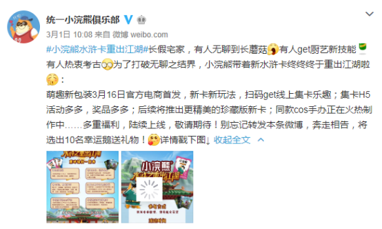有意思的是,隨著盲盒成為風(fēng)口,有人將這一現(xiàn)象戲稱為“當(dāng)年為集齊卡牌而瘋狂購買干脆面的孩子長大了”。也許是為經(jīng)典重現(xiàn),也許是為提振銷量,近日統(tǒng)一小浣熊俱樂部官方微博宣布,小浣熊水滸卡重出江湖,另有珍藏版新卡與同款COS手辦正在路上。