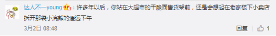 “許多年以后,你站在大超市的干脆面貨架前,還是會想起在老家樓下小賣店拆開那袋小浣熊的遙遠(yuǎn)下午”。在官方微博下,有一名用戶這樣寫道。