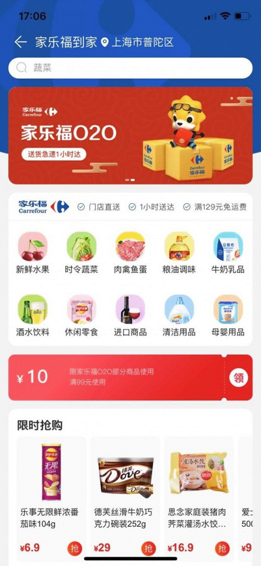 家樂福的到家服務便是在彼時全面接入蘇寧“1小時場景生活圈”,駛入全面升級快車道。今年以來,家樂福到家服務進一步提速,先是在2月5日,家樂福全國51座城市的209家門店接入蘇寧易購APP,在門店推出3公里1小時達;再是在2月20日,家樂福到家業(yè)務再升級,推出10公里半日達“同城配”服務。