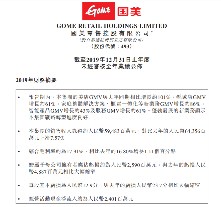 國美零售2019年銷售收入594.83億元,同比下滑7.57% 仙雯 ? 2020年4月1日 09:50 ? 快訊, 財經, 零售 速途網訊 昨日,國美零售公布2019年度業績,報告期內,集團的銷售收入594.83億元,同比下滑7.57%;歸屬母公司擁有者應占虧損約25.9億元,去年同期虧損為48.87億元。 贊 (0) 仙雯 0 生成海報 石頭科技發布全球首款聚合物超輕電池手持無線吸塵器 上一篇 2020年4月1日 09:47 比亞迪2019年全年實現凈利潤16.1億元,同比下降42.03% 下一篇 2020年4月1日 10:04