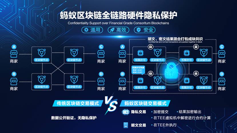 螞蟻區塊鏈提出并實現了全新思路。據了解,該方案是一個基于硬件TEE的鏈上隱私保護計算模型,確保業務數據高速增長的情況下,將隱私保護計算代價壓縮到最低,用戶隱私數據可以在螞蟻區塊鏈上0成本得到保護,無性能損失。