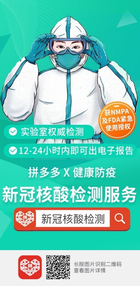 速途網4月23日消息(報道:李楠)今日,拼多多聯合華大基因等機構,面向全網用戶推出“新冠核酸檢測”預約服務,目前已經在北上廣深等全國近50個城市推出,助力各地人員和企業復工復產的需求。