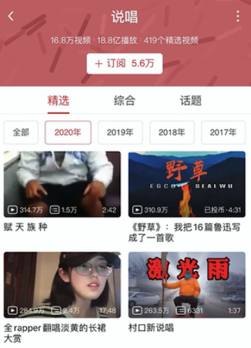 與此同時,B站的說唱區也正式上線,該專區將集結眾多熱門說唱視頻。目前說唱區已有16.8萬個視頻,獲得累計18.8億次播放以及5.6萬訂閱人數,已聚集不少人氣。
