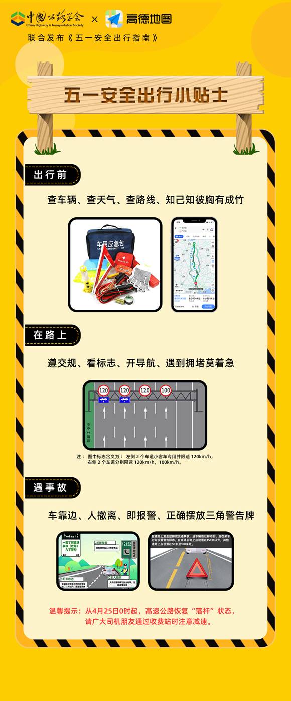 速途網(wǎng)4月30日消息(報道:李楠)今天是全國交通安全反思日,中國公路學(xué)會聯(lián)合高德地圖發(fā)布《五一安全出行指南》(以下簡稱《指南》),提醒出行者在“五一”期間注意行車安全,共同營造安全、文明的出行環(huán)境,重點防范二次事故風(fēng)險。
