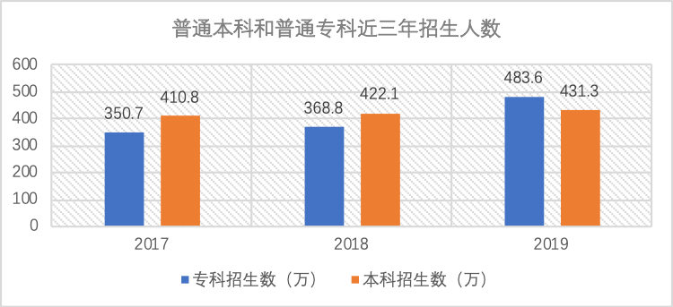 2019年普通本專科招生914.90萬人,比上年增加123.91萬人,增長15.67%;其中,專科招生人數增長114.8萬人,增長31.13%。事實上,名為大學擴招,實為“高職擴招”(??片F在通常指高等職業教育的??茖W歷教育,即高職):繼2019年高職院校擴招100萬人后,2020年宣布再次擴招200萬。